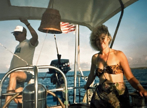 We had sailed to Curacao before my Dad arrived. We were anchored close to Sarifundy Marina owned by Joost & Honey. It is considered bad luck to change the name of a vessel, but we did! The Vagabond carried the energy of a nefarious past plus we had done such a complete remake of her, that we felt she was a newborn. We renamed her Opportunity...and yes, I painted the name on the stern once again in a bobbing dingy.